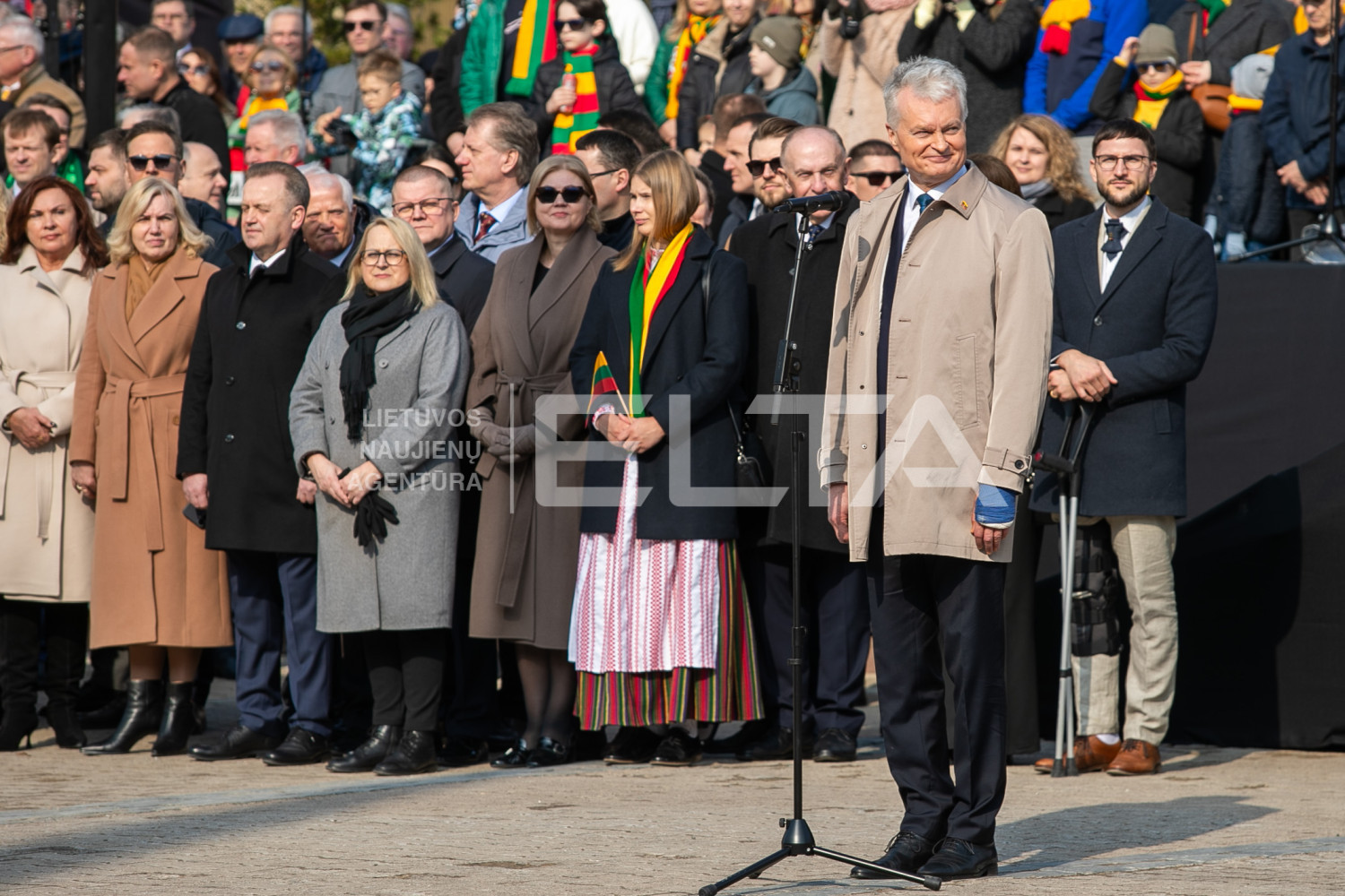 “Today we celebrate a historic choice. We commemorate the day when people gathered in this square with the Vytis and national tricolour flags, waiting for one single message – the message of freedom and independence. After long decades of oppression, they would have accepted no other. […] Thirty-six years ago we stood up. We took a deep breath. And we set out on our own path,” said Nausėda.