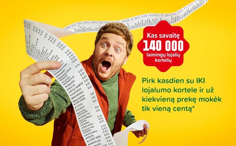 Kiekvieną savaitę atsitiktine tvarka 140 tūkst. klientų, priklausančių „Iki“ lojalumo programai, bus suteikiama nuolaida, kurią pritaikius už kiekvieną produktą savo pirkinių krepšelyje pirkėjas mokės tik po 0,01 Eur. Nuolaida taikoma perkant už ne daugiau kaip 100 Eur.